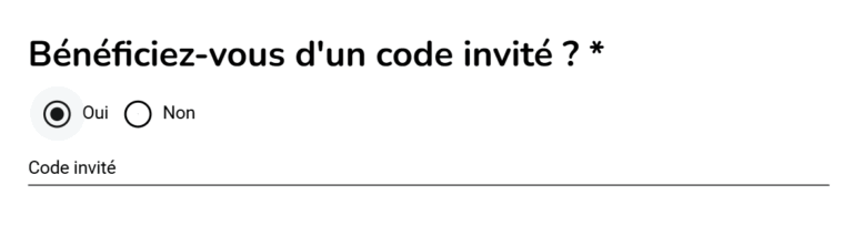 Si vous disposez d’un code invité, saisissez votre code dès le début du formulaire et vérifié que la mention « code valide » s’affiche bien.